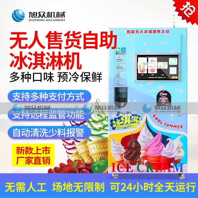 無人售貨冰淇淋機, 人工成本越來越高,無人店、無人售賣機必將是一個趨勢。簡單而又重復的勞動(售賣)必將被智能無人替代。無人售貨自助冰淇淋機支持多種支付方式,支持遠程監(jiān)管功能,支持預冷保鮮,支持多種口味混合,自動清洗少料報警。無需人工、場地無限制。