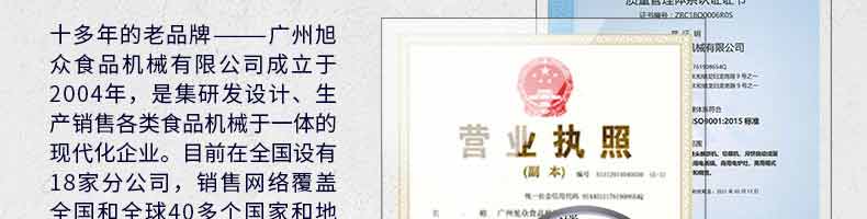 廣州旭眾食品機械有限公司是一家集科研開發(fā),生產設計,營銷服務為一體的現代化生產企業(yè)?,F代化生產車間,精湛制造技術,所產機械歷經市場重重考驗,不斷贏得海內外客戶的贊譽。