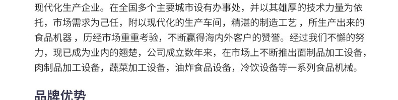 廣州旭眾食品機(jī)械有限公司是一家集科研開發(fā),生產(chǎn)設(shè)計(jì),營(yíng)銷服務(wù)為一體的現(xiàn)代化生產(chǎn)企業(yè)?,F(xiàn)代化生產(chǎn)車間,精湛制造技術(shù),所產(chǎn)機(jī)械歷經(jīng)市場(chǎng)重重考驗(yàn),不斷贏得海內(nèi)外客戶的贊譽(yù)。