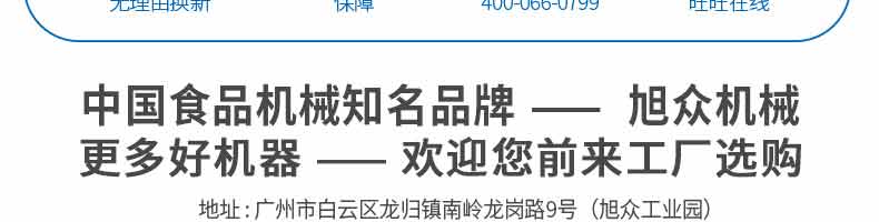 廣州旭眾食品機(jī)械有限公司是一家集科研開發(fā),生產(chǎn)設(shè)計,營銷服務(wù)為一體的現(xiàn)代化生產(chǎn)企業(yè)。現(xiàn)代化生產(chǎn)車間,精湛制造技術(shù),所產(chǎn)機(jī)械歷經(jīng)市場重重考驗,不斷贏得海內(nèi)外客戶的贊譽(yù)。