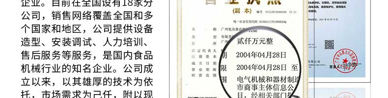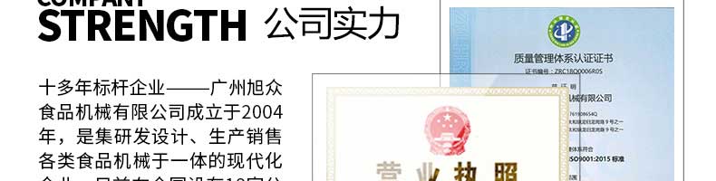 廣州旭眾食品機械有限公司是一家集科研開發(fā),生產(chǎn)設(shè)計,營銷服務為一體的現(xiàn)代化生產(chǎn)企業(yè)。現(xiàn)代化生產(chǎn)車間,精湛制造技術(shù),所產(chǎn)機械歷經(jīng)市場重重考驗,不斷贏得海內(nèi)外客戶的贊譽。