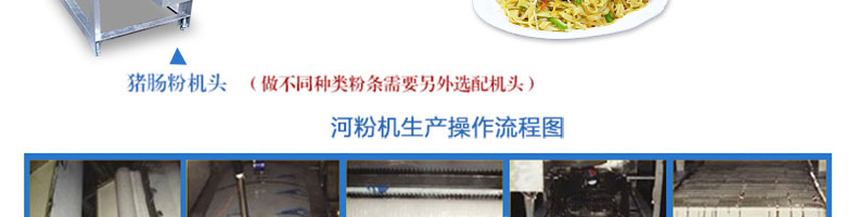 名稱SZ-HF-150高效節(jié)能河粉機(jī) 電源220/380V 功率0.75/41kw 產(chǎn)量60/90/120/150kg/h 尺寸主機(jī)尺寸3500*720*1050mm 外形尺寸3600*920*1500mm 重量320kg 規(guī)格粉條寬度mm:4/6/8/10 其他