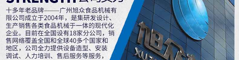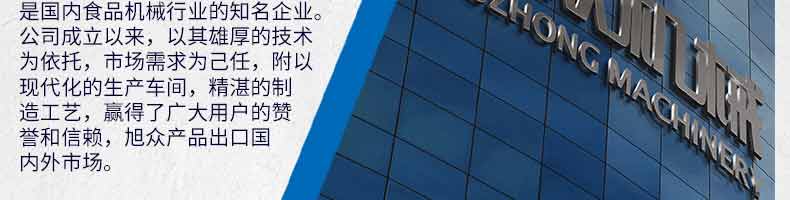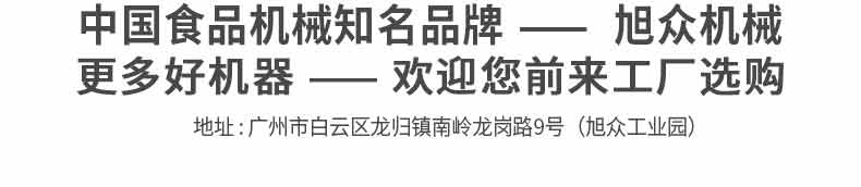 廣州旭眾食品機(jī)械有限公司是一家集科研開發(fā),生產(chǎn)設(shè)計(jì),營銷服務(wù)為一體的現(xiàn)代化生產(chǎn)企業(yè)?,F(xiàn)代化生產(chǎn)車間,精湛制造技術(shù),所產(chǎn)機(jī)械歷經(jīng)市場(chǎng)重重考驗(yàn),不斷贏得海內(nèi)外客戶的贊譽(yù)。