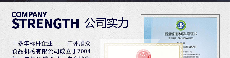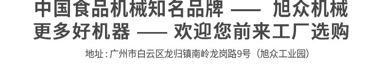 廣州旭眾食品機械有限公司是一家集科研開發(fā),生產設計,營銷服務為一體的現(xiàn)代化生產企業(yè)。現(xiàn)代化生產車間,精湛制造技術,所產機械歷經市場重重考驗,不斷贏得海內外客戶的贊譽。