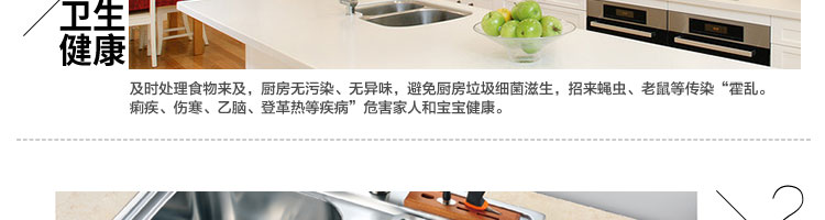 DCLQ40-廚房垃圾處理器,該機(jī)是一種現(xiàn)代化的廚房電器,它用全新的方法來處理現(xiàn)代家庭中的食品廢物。處理器裝于廚房水槽下,能夠有效地將食物垃圾研磨成細(xì)小顆粒,直接從下水管道排出,從而輕松實(shí)現(xiàn)及時(shí)方便快捷的廚房清潔,優(yōu)化家居環(huán)境。