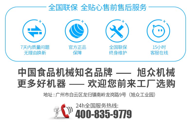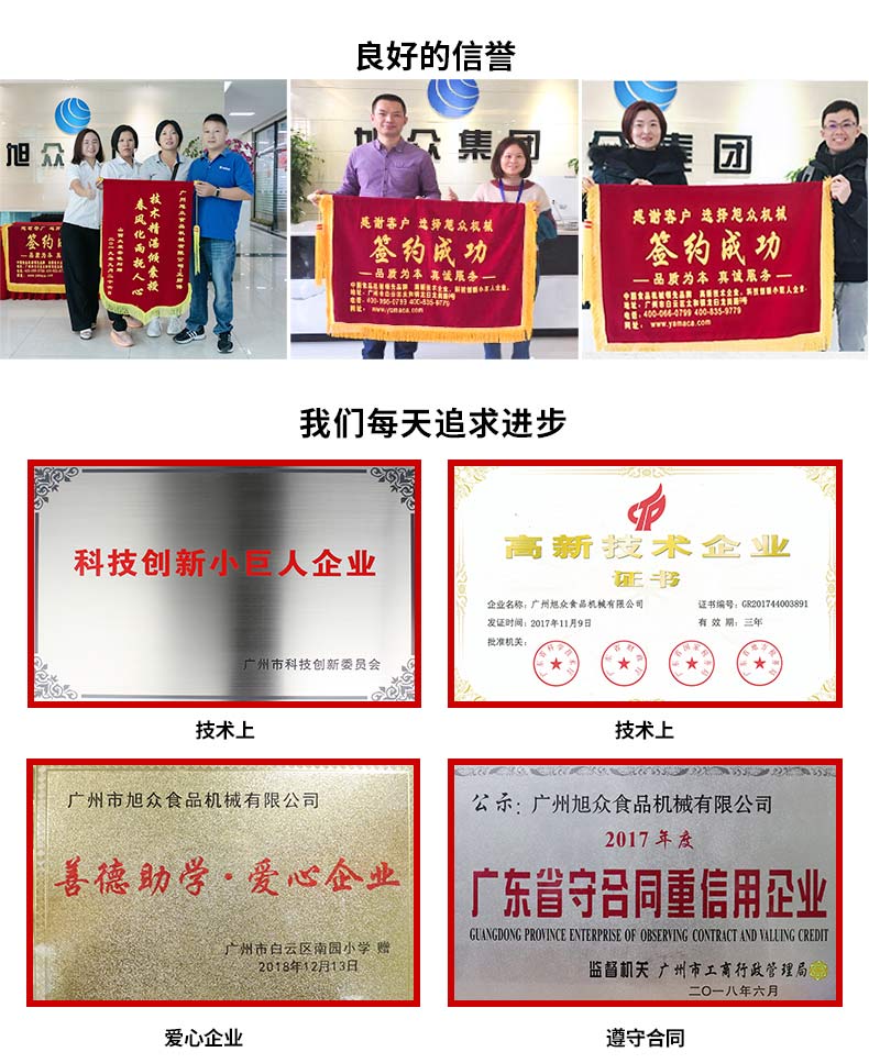 廣州旭眾食品機(jī)械有限公司是一家集科研開發(fā),生產(chǎn)設(shè)計,營銷服務(wù)為一體的現(xiàn)代化生產(chǎn)企業(yè)。現(xiàn)代化生產(chǎn)車間,精湛制造技術(shù),所產(chǎn)機(jī)械歷經(jīng)市場重重考驗(yàn),不斷贏得海內(nèi)外客戶的贊譽(yù)。