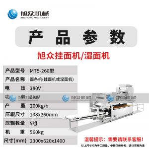 MT5-260型面條機(jī),不同的面刀可以做出不同形狀的面食做工細(xì),實(shí)用又方便,出面均勻,成型漂亮,可咨洵客服了解詳情