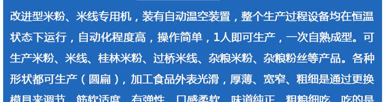SZ-30米粉機,生產多樣性可生產米粉、米線、粉絲、粉條、、年糕、玉米面條、各種雜糧粉絲、各種面條、雜糧面條、彩色面條以及以紅薯、玉米、大豆、蠶豆等制成淀粉為原料的等多種食品而且每種食品厚薄、粗細等規(guī)格可根據(jù)需要任意調整。