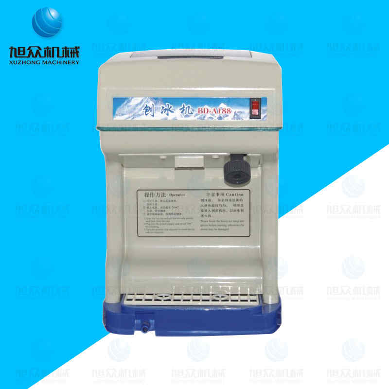 A188刨冰機(jī),可根據(jù)需要調(diào)整刀刃調(diào)解柄即可加工各種粗細(xì)不同的刨冰。本機(jī)結(jié)構(gòu)緊湊、運轉(zhuǎn)平穩(wěn)可靠,具有體積小、重量輕、外形美觀、操作方便、工作效率高等優(yōu)點。