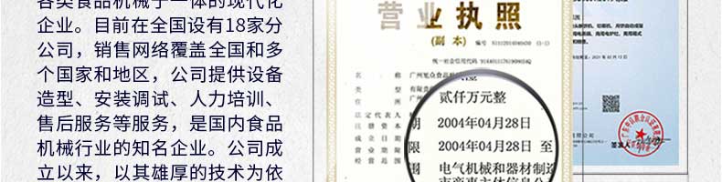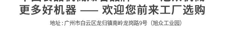 廣州旭眾食品機(jī)械有限公司是一家集科研開(kāi)發(fā),生產(chǎn)設(shè)計(jì),營(yíng)銷服務(wù)為一體的現(xiàn)代化生產(chǎn)企業(yè)?,F(xiàn)代化生產(chǎn)車間,精湛制造技術(shù),所產(chǎn)機(jī)械歷經(jīng)市場(chǎng)重重考驗(yàn),不斷贏得海內(nèi)外客戶的贊譽(yù)。