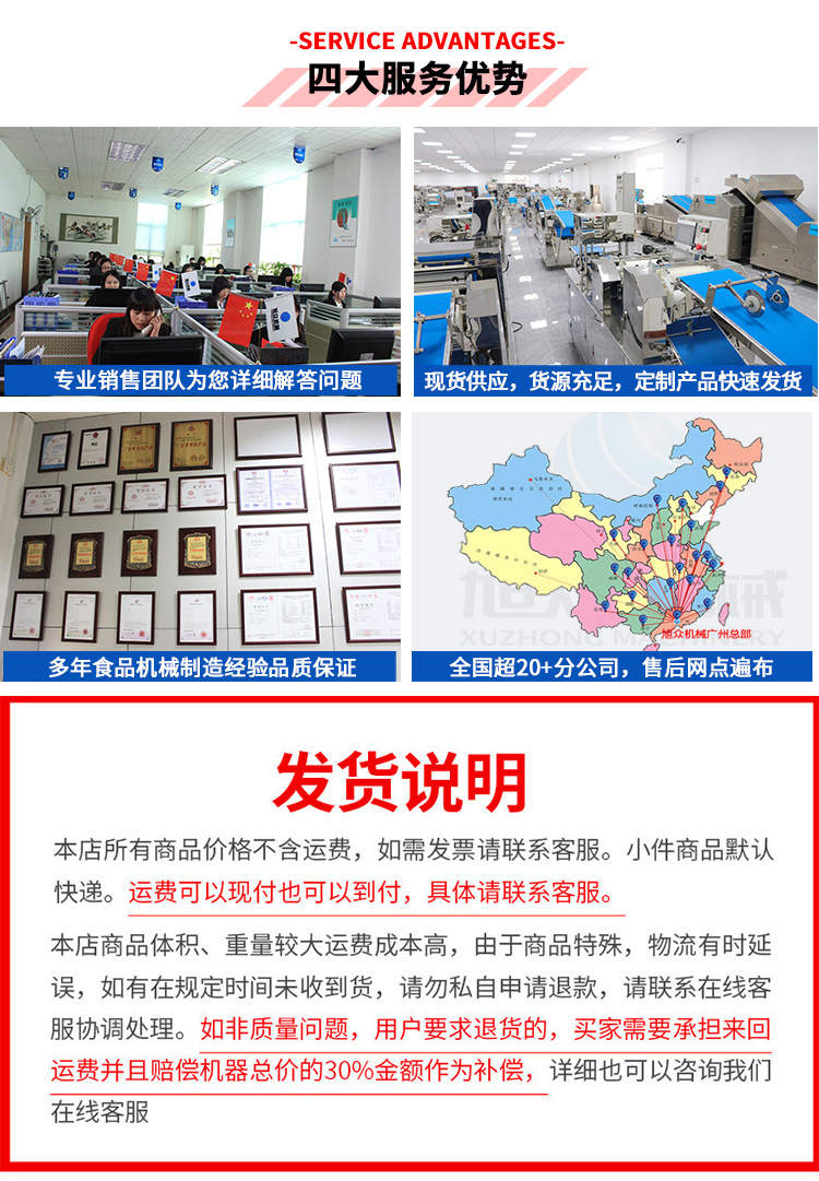 廣州旭眾食品機(jī)械有限公司是一家集科研開發(fā),生產(chǎn)設(shè)計(jì),營銷服務(wù)為一體的現(xiàn)代化生產(chǎn)企業(yè)?,F(xiàn)代化生產(chǎn)車間,精湛制造技術(shù),所產(chǎn)機(jī)械歷經(jīng)市場重重考驗(yàn),不斷贏得海內(nèi)外客戶的贊譽(yù)。