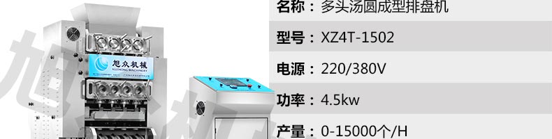 XZ4T-1501多功能搓圓擺盤機/湯圓機,本機只要將面團放入進料口,開機便可自動搓圓、成型的設備,一次性成型四次產(chǎn)品,制品不易變形,工作效率高,相當于15-20個工人同時手工制作湯圓,并可自動排盤,真正的低投入、高收效、省錢省工。