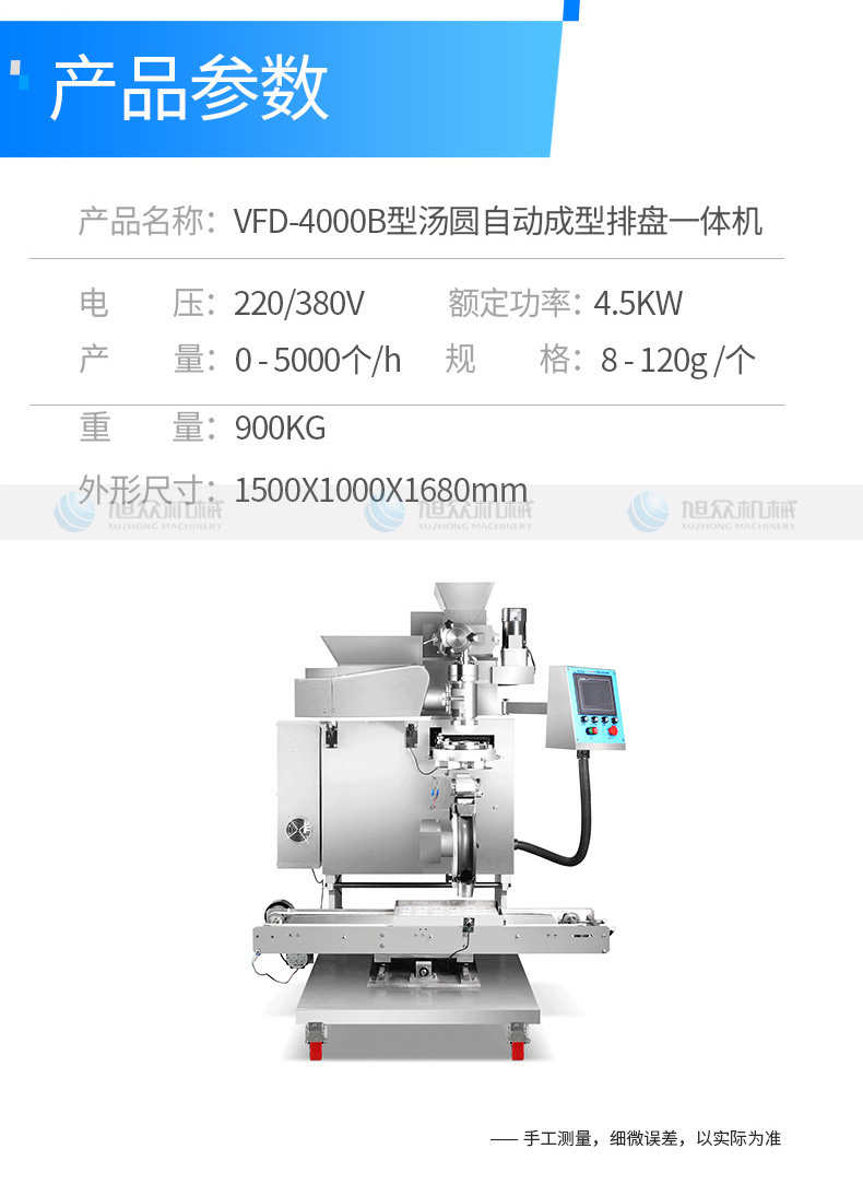 VFD-4000B湯丸機(jī),告別手工時(shí)代旭僉多功能湯圓機(jī)輕松解決問(wèn)題。大產(chǎn)量輕松滿(mǎn)足需求容量大強(qiáng)勁電機(jī),產(chǎn)量可達(dá)4000個(gè)小時(shí),爭(zhēng)取每一分黃金時(shí)間