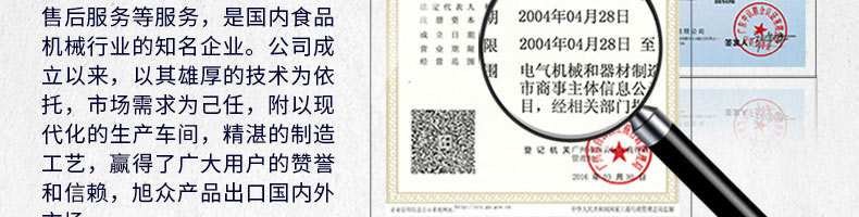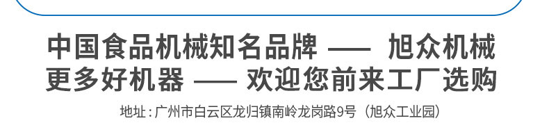 廣州旭眾食品機(jī)械有限公司是一家集科研開發(fā),生產(chǎn)設(shè)計,營銷服務(wù)為一體的現(xiàn)代化生產(chǎn)企業(yè)?,F(xiàn)代化生產(chǎn)車間,精湛制造技術(shù),所產(chǎn)機(jī)械歷經(jīng)市場重重考驗,不斷贏得海內(nèi)外客戶的贊譽(yù)。