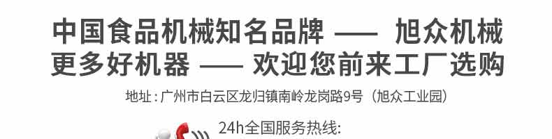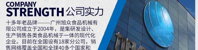 廣州旭眾食品機(jī)械有限公司是一家集科研開發(fā),生產(chǎn)設(shè)計(jì),營銷服務(wù)為一體的現(xiàn)代化生產(chǎn)企業(yè)。現(xiàn)代化生產(chǎn)車間,精湛制造技術(shù),所產(chǎn)機(jī)械歷經(jīng)市場重重考驗(yàn),不斷贏得海內(nèi)外客戶的贊譽(yù)。