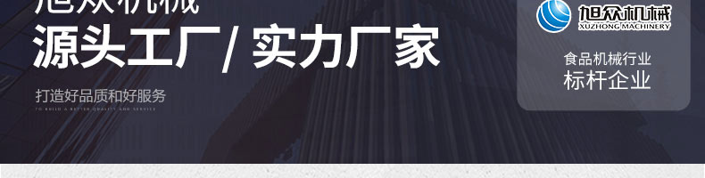 廣州旭眾食品機械有限公司是一家集科研開發(fā),生產(chǎn)設(shè)計,營銷服務(wù)為一體的現(xiàn)代化生產(chǎn)企業(yè)。現(xiàn)代化生產(chǎn)車間,精湛制造技術(shù),所產(chǎn)機械歷經(jīng)市場重重考驗,不斷贏得海內(nèi)外客戶的贊譽。