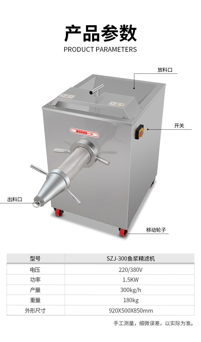 SZJ-300魚漿精濾機,商用創(chuàng)業(yè)魚漿精濾機,用于配套魚肉采肉機進行魚肉過濾雜質(zhì)。節(jié)省人工開支,人工加工魚漿,效率慢剔除魚細骨,不干凈,有了魚漿精濾機,一人就可以很快制作多種魚漿。