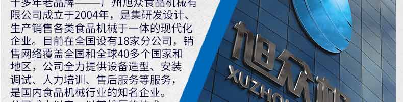 廣州旭眾食品機(jī)械有限公司是一家集科研開發(fā),生產(chǎn)設(shè)計,營銷服務(wù)為一體的現(xiàn)代化生產(chǎn)企業(yè)?,F(xiàn)代化生產(chǎn)車間,精湛制造技術(shù),所產(chǎn)機(jī)械歷經(jīng)市場重重考驗,不斷贏得海內(nèi)外客戶的贊譽(yù)。