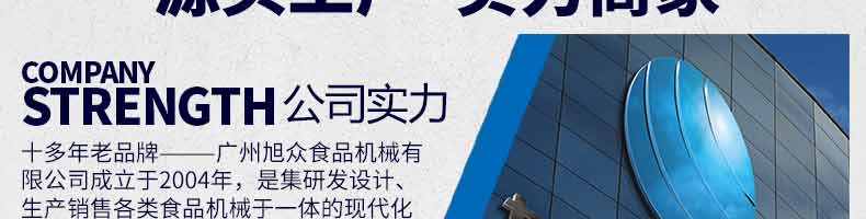 廣州旭眾食品機(jī)械有限公司是一家集科研開發(fā),生產(chǎn)設(shè)計(jì),營銷服務(wù)為一體的現(xiàn)代化生產(chǎn)企業(yè)?,F(xiàn)代化生產(chǎn)車間,精湛制造技術(shù),所產(chǎn)機(jī)械歷經(jīng)市場(chǎng)重重考驗(yàn),不斷贏得海內(nèi)外客戶的贊譽(yù)。